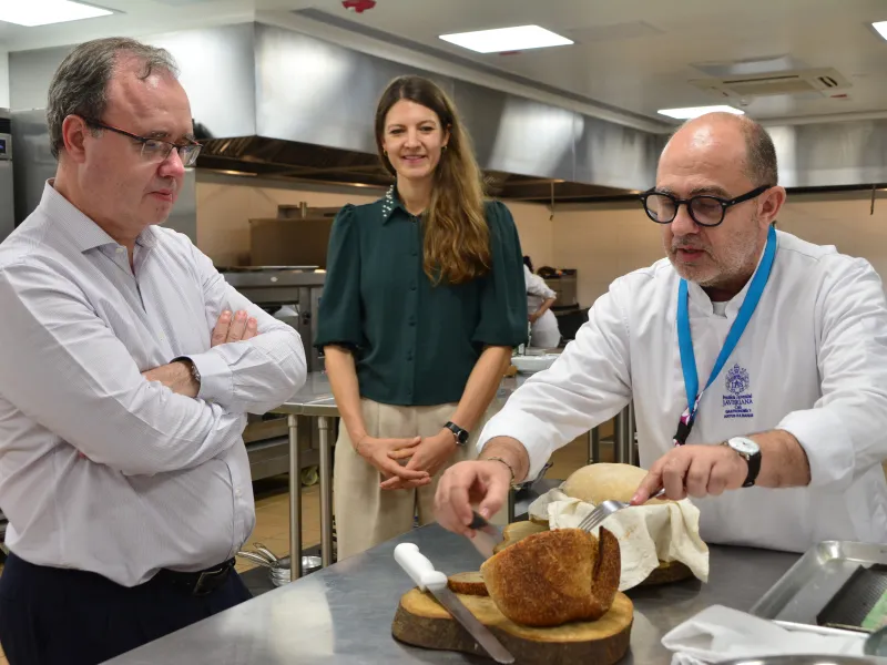 Asimismo, señaló que uno de los muchos programas en común que fue de mayor interés es el de gastronomía, ya que es bastante parecido al de Comillas. Esto, lo menciona como resultado de su paso por los laboratorios de gastronomía de la universidad, donde un grupo de estudiantes preparó una degustación de platillos elaborados con productos locales.